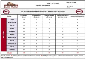 Elazığ’da etkili olan kar yağışı, özellikle kırsal bölgelerde ulaşımı olumsuz etkiledi.İl Özel İdaresi verilerine göre, il genelinde 108 köy yolu kar nedeniyle ulaşıma kapandı. En fazla kapanma Palu, Karakoçan ve Sivrice ilçelerinde yaşandı.Elazığ Valiliği İl Özel İdaresi Yol ve Ulaşım Hizmetleri Müdürlüğü tarafından 28 Aralık saat 08.35 itibarıyla paylaşılan karla mücadele uygulama cetveline göre, toplam 546 köyün bulunduğu Elazığ’da 108 köy yolunda ulaşım sağlanamıyor. En fazla köy yolu kapanan ilçe 28 köy yolu ile Palu olurken, Karakoçan’da 21, Sivrice’de 19, Baskil’de 14, Maden ve Kovancılar’da ise 11’er köy yolu kapalı durumda.